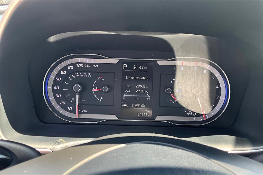 Option Group 01,6 Speakers,AM/FM radio: SiriusXM,Radio data system,Radio: AM/FM/HD/SiriusXM Audio System,Air Conditioning,Rear window defroster,Power driver seat,Power steering,Power windows,Remote keyless entry,Steering wheel mounted audio controls,Four wheel independent suspension,Traction control,4-Wheel Disc Brakes,ABS brakes,Dual front impact airbags,Dual front side impact airbags,Emergency communication system: Blue Link Connected Car Service (3-year complimentary subscription),Front anti-roll bar,Low tire pressure warning,Occupant sensing airbag,Overhead airbag,Rear anti-roll bar,Brake assist,Electronic Stability Control,Auto High-beam Headlights,Delay-off headlights,Fully automatic headlights,First Aid Kit,Panic alarm,Security system,Speed control,Bumpers: body-color,Front and Rear Mudguards,Heated door mirrors,Power door mirrors,Rear Bumper Applique,Roof rack: rails only,Spoiler,Turn signal indicator mirrors,Apple CarPlay & Android Auto,Carpeted Floor Mats,Driver door bin,Driver vanity mirror,Front reading lights,Illuminated entry,Outside temperature display,Overhead console,Passenger vanity mirror,Rear seat center armrest,Tachometer,Telescoping steering wheel,Tilt steering wheel,Trip computer,Front Bucket Seats,Front Center Armrest,Heated Front Bucket Seats,Heated front seats,Split folding rear seat,Stain & Odor Resistant Cloth Seat Trim,Cargo Net,Passenger door bin,Alloy wheels,Wheel Locks,Wheels: 17" x 7.0J" Alloy,Rear window wiper,Variably intermittent wipers,3.648 Axle Ratio