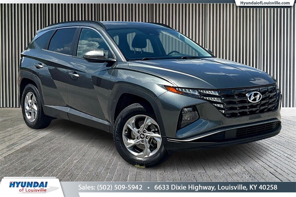 2022 Hyundai Tucson SEL AWD for Sale in Louisville, KY The 2022 Hyundai Tucson SEL AWD in Amazon Gray with a Black interior blends modern styling, advanced safety features, and versatile capability. With Hyundais reputation for reliability and value, this SUV is a top choice for Louisville families and commuters seeking comfort, technology, and confidence on the road. Performance and Capability: Powered by a 2.5L 4-cylinder Smart stream engine paired with an 8-speed automatic transmission with SHIFTRONIC. Features HTRAC all-wheel drive, drive mode select, Idle Stop & Go, and an electric parking brake for efficiency and control in all conditions. Safety Features: Forward Collision-Avoidance Assist, Lane Keeping Assist, Lane Following Assist, Blind Spot Collision-Avoidance Assist, Rear Cross-Traffic Collision-Avoidance Assist, Safe Exit Warning, Driver Attention Warning, Rear Occupant Alert, ABS with brake-force distribution, stability and traction control, Downhill Brake Control, Hillstart Assist, tire pressure monitoring system, and advanced airbag system with rollover sensors. Comfort and Convenience: Proximity key with push-button start, heated front seats, power drivers seat with lumbar support, heated side mirrors, rear air vents with dual USB outlets, Smart Cruise Control with Stop & Go, reclining 60/40 split-folding rear seat, remote folding seatbacks, illuminated visors, and a tilt/telescopic steering wheel with audio and cruise controls. Technology and Connectivity: 8-inch display audio system with Android Auto and Apple CarPlay, AM/FM/HD Radio, SiriusXM Radio with trial subscription, Blue Link Connected Services with Remote Start (3 years included), rearview monitor with parking guidance, 4.2-inch LCD multi-information display, multiple USB ports, and Bluetooth hands-free phone system. Design Highlights: 17-inch alloy wheels, LED headlights with high beam assist, LED tail lamps, roof side rails, LED daytime running lights, rear privacy glass, and body-color rear spoiler with integrated LED brake light. Added Features: Carpeted floor mats, cargo net, first aid kit, mud guards, rear bumper applique, and wheel locks included. This 2022 Tucson SEL AWD is an excellent SUV for drivers in Louisville, Elizabethtown, Shepherdsville, and Southern Indiana. Schedule your test drive today at Hyundai of Louisville and see why so many Kentucky drivers choose the Tucson for its safety, technology, and everyday value. Anyone who purchases an used vehicle over $12,000* is automatically entitled to receive "The Hyundai of Louisville Customer Happiness Guarantee" *. The Guarantee include: Lifetime Limited Powertrain Warranty 15 Day Money Back or Exchange Guarantee AutoCheck Vehicle History Report with Buyback Protection Written Low Price Guarantee No Lemon Guarantee.
